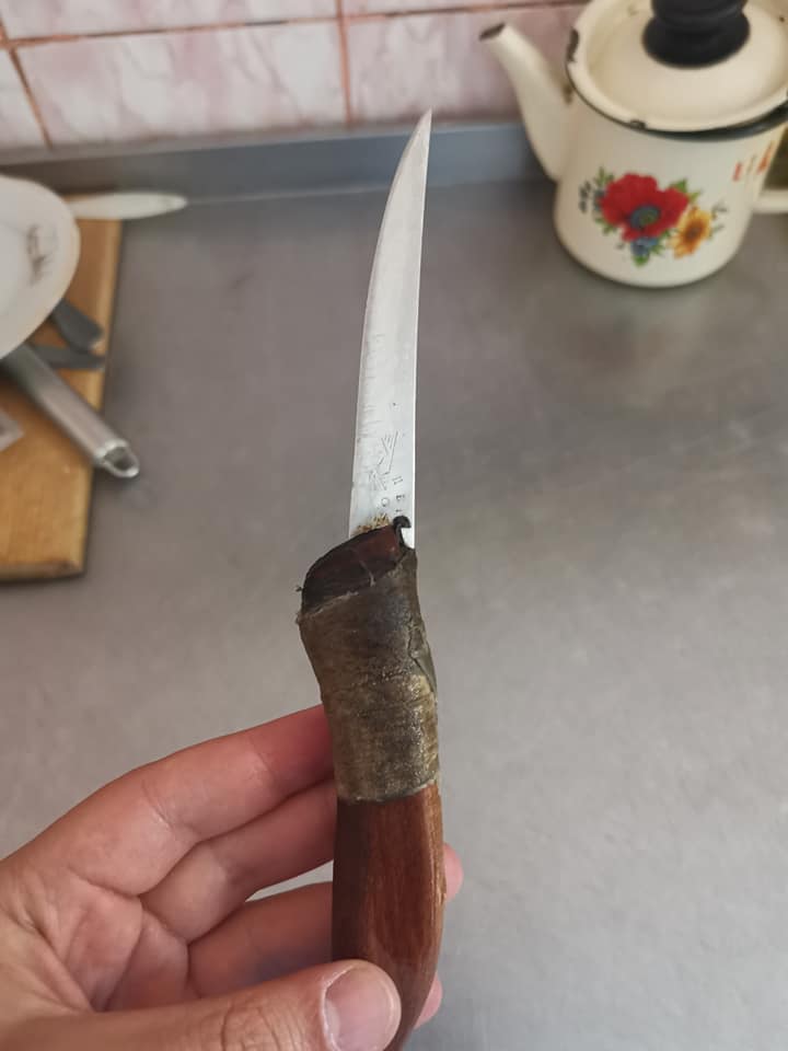 Він зазнімкував старі каструлі, ваги та ножіу шкільних їдальнях. Весь цей інвентар не можна використовуватися для приготування їжі.