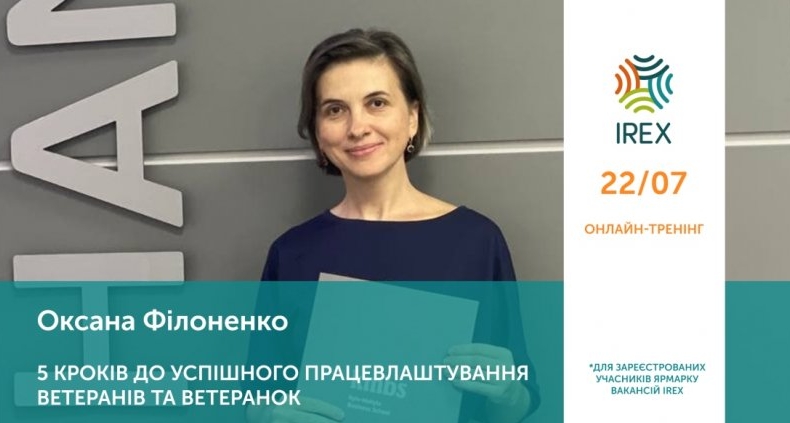 22 липня відбудеться безкоштовний онлайн-тренінг «5 кроків до успішного працевлаштування ветеранів та ветеранок».