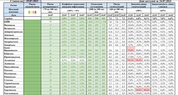 Про це свідчать дані карти МОЗ в неділю, 25 липня.