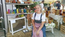 Цікаву локацію, яка привертала увагу, придумали луцькі продавці меду та бджолиних продуктів: біля прилавка вони поставили соти з бджолами, обрамлені склом. Можна було добре роздивитися, як кипить робота у бджіл.