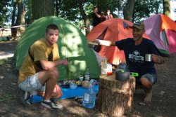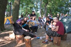Фестивальники встигли зручно облаштуватися у наметовому містечку, тому з самого ранку звідти доносився запах смачної їжі, багаття та було чутно пісні під гітару, гомін і сміх.