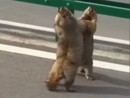 У Китайському автономному окрузі Хайси-Монголо-Тибет місцевому мешканцю вдалося зняти бійку двох бабаків, які влаштували поєдинок прямо посеред траси.