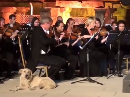 Собака прилягла, позіхнула і вирішила послухати музику разом з усіма, чим привела в захват публіку в залі.