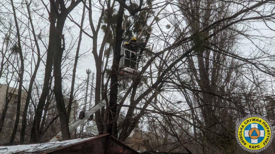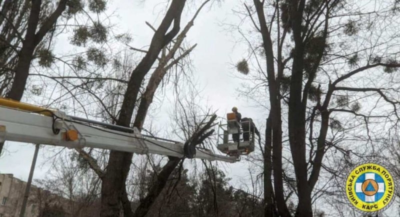 14 січня о 9:58 за допомогою автовежі прибрали аварійне дерево, що становило небезпеку для життя перехожих на вулиці Котельнікова, в Святошинському районі столиці.