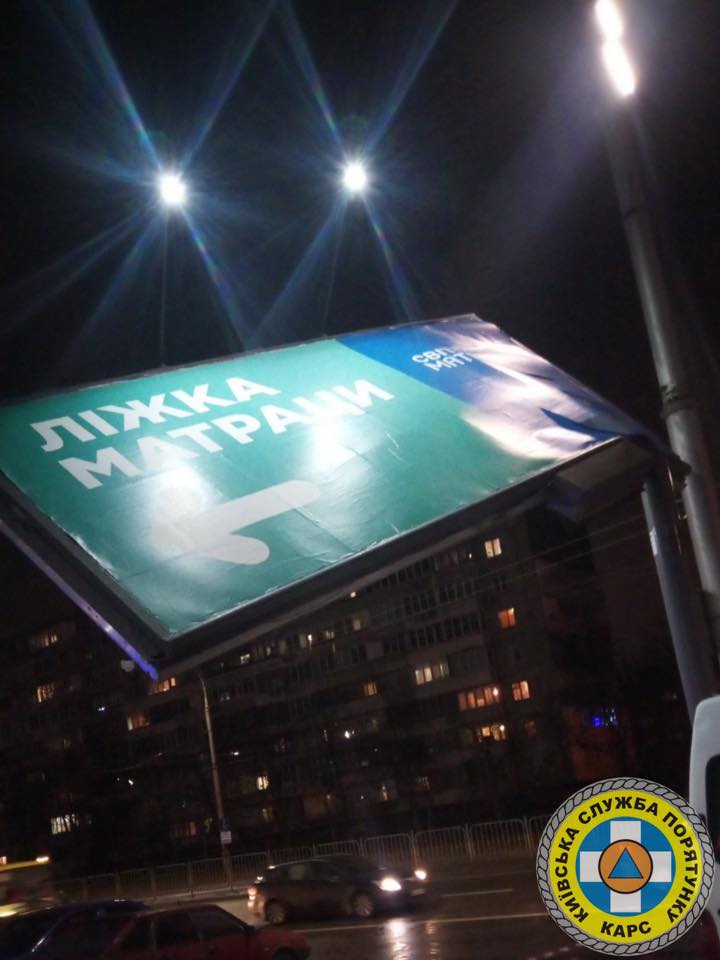 Зокрема, о 18:02 – на вул. Перова, 44; о 20:14 – на вул. Празьку, 8. Тут, у зв'язку з великою парусністю конструкції, небезпечне місце огороджено, конструкцію знерухомлено.