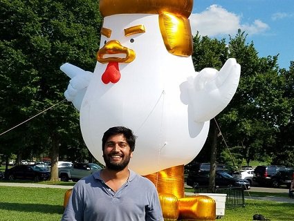 У середу вранці, 9 серпня, поблизу Білого дому розмістили гігантську надувну курку з зачіскою президента США Дональда Трампа. Ідея встановити курку поряд із адміністрацію президента належить режисерові Тарану Сінгху Бра. Він отримав спеціальний дозвіл на це.