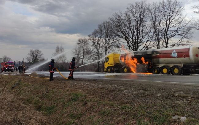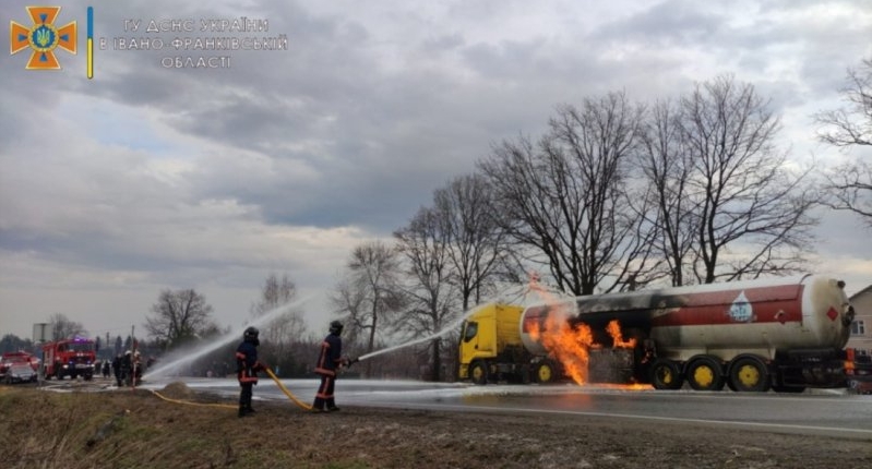 На трасі «Стрий-Мамалига» другий день горить цистерна з газом, рятувальникам не вдається її загасити.