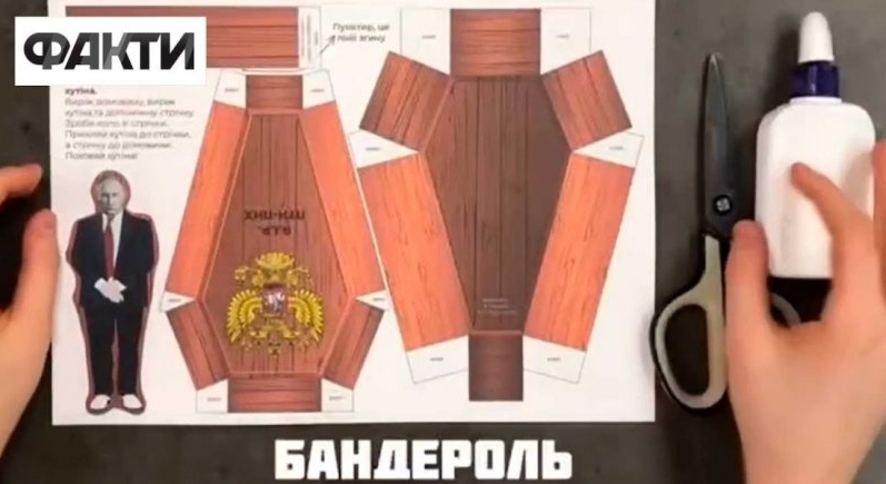Як правильно оформити бандероль показав радник голови МВС України — Антон Геращенко. Для цього потрібно: одна труна, один диктатор, ножиці та клей. Так українці називають посилку з тілом російських окупантів додому.