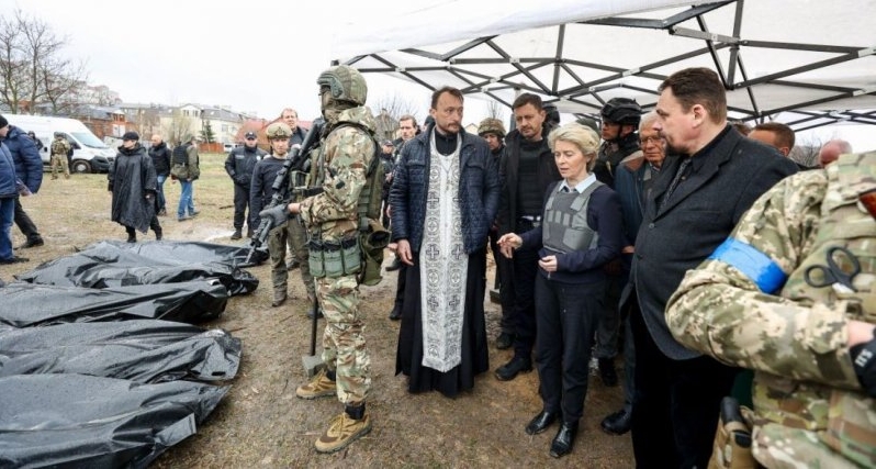 Так, фон дер Ляєн, Боррель та Геґера побували на місці братської могили, з якої триває ексгумація тіл.