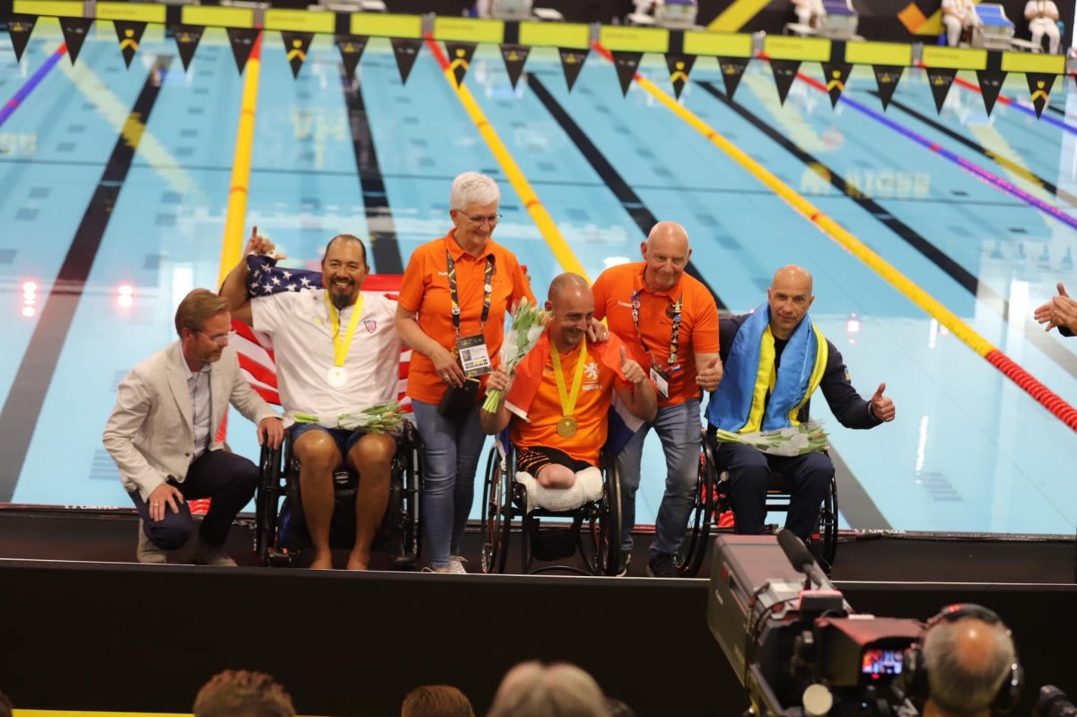 «Бронзу» у плаванні на дистанції 50 метрів вільним стилем українській команді приніс Іван Лепеха, Андрій Бадарак виборов дві медалі - бронзову у запливі на 50 м брасом та золоту у плаванні на 50 м на спині.