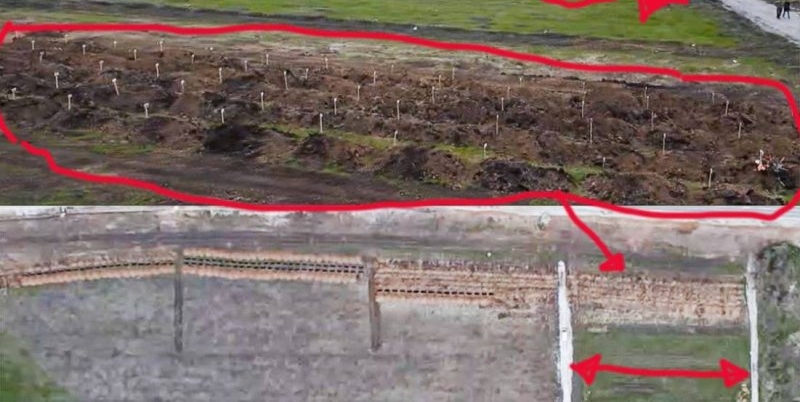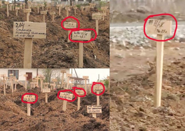 "Величезну братську могилу в Мангуші вони маскують «табличками». Поки виходить дуже погано. На фото бачимо тільки один сектор захоронення, де, судячи з нумерації табличок, щонайменше 268 поховань.