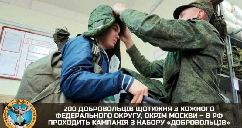 Військове керівництво рф встановило чіткі "норми набору": для далекосхідного та сибірського федерального це 200 "добровольців" щотижня. При цьому, в Москві набір взагалі не проводиться.
