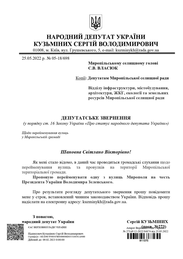"У світі назви вулиць та площ отримують українські імена. У європейських містах з’являються вулиці Володимира Зеленського, площі Тараса Шевченка", – каже депутат.