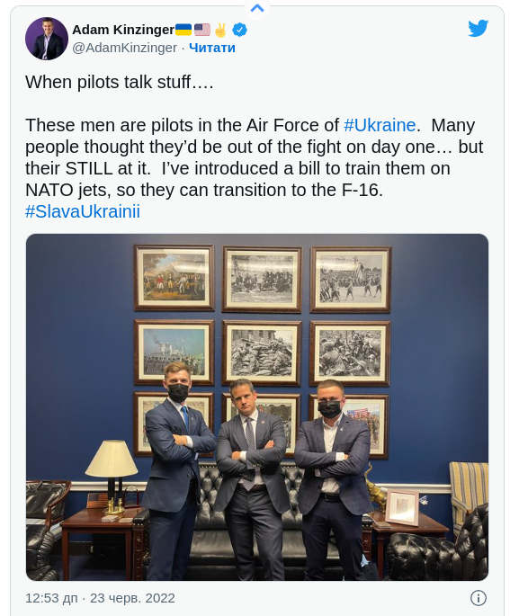 Республіканець Кінзінгер і конгресмен-демократ Кріссі Хулахан, які є ветеранами Повітряних сил США, представили проект закону про підготовку українських льотчиків-винищувачів на американських бойових літаках.