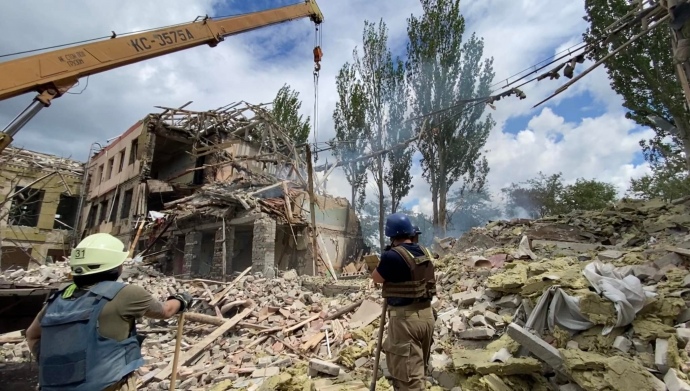 "О 09:10 завершені аварійно-рятувальні та пошукові робіти на зруйнованій внаслідок обстрілу будівлі школи у місті Краматорськ.