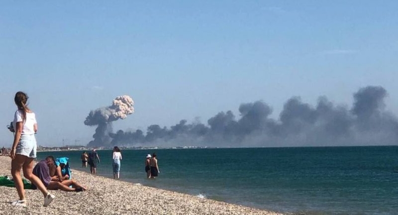 купанти вже офіційно підтвердили факт "декількох вибухів в районі Новофедорівки", але не надають подробиць. Так званий "глава" Криму Сергій Аксьонов повідомив, що виїхав на місце події та виясняє обставини.