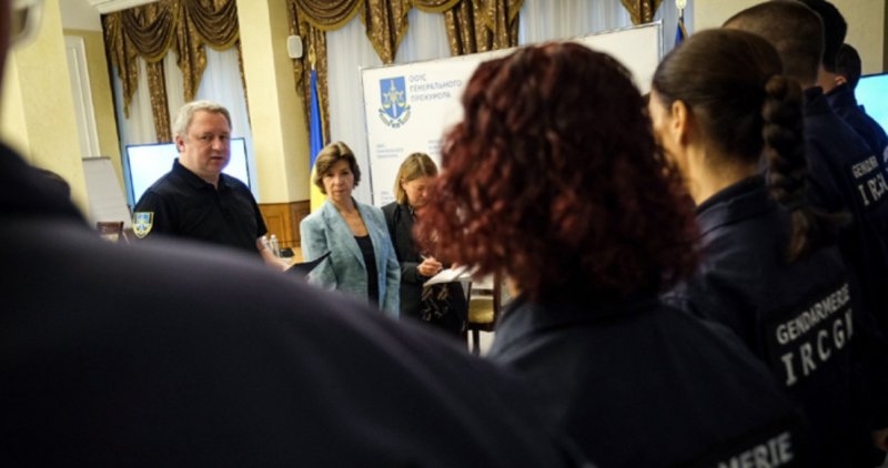"Слідчі Національної жандармерії щойно прибули в Україну. Міністр закордонних справ Катрін Колонна представила їх генеральному прокурору Андрію Костіну. Від завтра вони працюватимуть в Ізюмському районі", - йдеться в повідомленні.