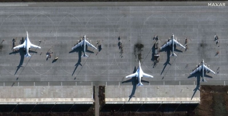 Знімки показують нещодавню військову активність на аеродромі та поблизу нього. На аеродромі розміщений підрозділ важкої бомбардувальної авіації, зокрема: Ту-95 та Ту-60.