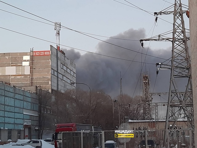 Російський паблік "Інцидент Новосибірськ" публікує багато фото і відео пожежі і зазначає, що на Станційній через пожежу стоїть "страшний запах пластику".