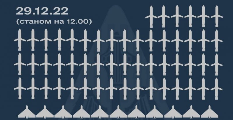 Всього, за попередніми даними, 29 грудня окупаційні війська застосували 69 ракет. Силами і засобами Повітряних Сил, у взаємодії з іншими складовими Сил оборони України знищили 54 ворожі крилаті ракети.