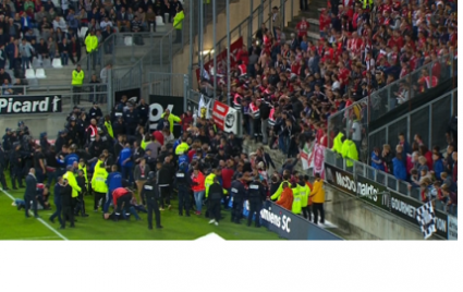 На матчі чемпіонату Франції з футболу Ам'єн – Лілль зламався загороджувальний бар'єр і фанати впали на нижче розташовані сектори трибун.