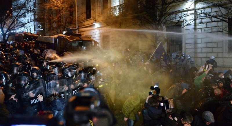Між протестувальниками та правоохоронцями спалахнули сутички, а правоохоронці почали застосовувати проти демонстрантів перцевий спрей та водомет. Мітингувальники прорвали барикаду, але згодом силовикам вдалося відтіснити демонстрантів від парламенту.