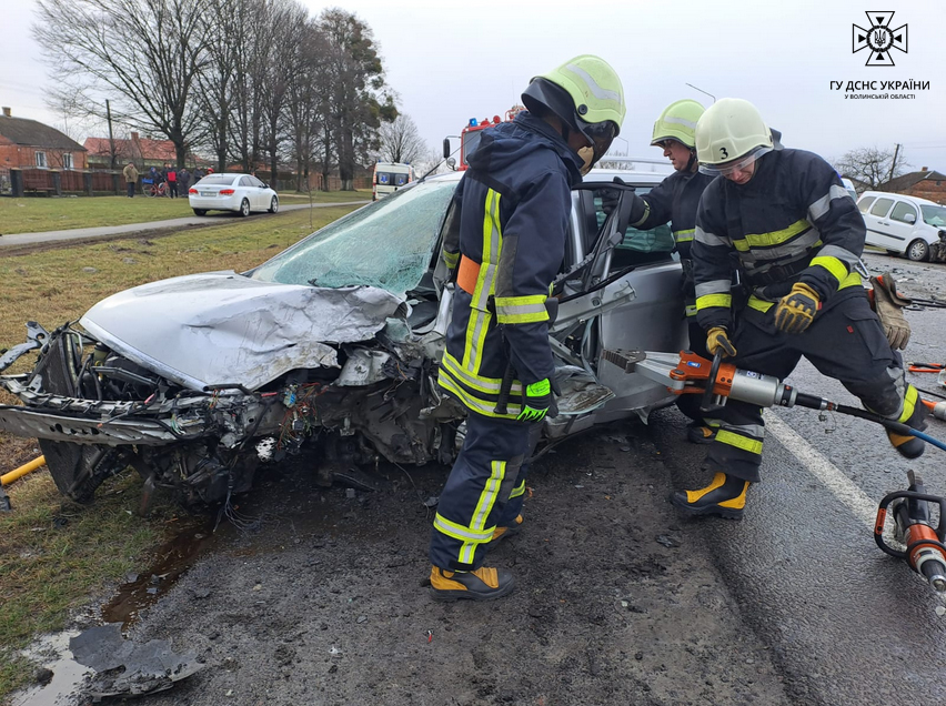 Травмованих громадян госпіталізували медики, а тіло загиблого водія вилучили бійці 3 ДПРЧ м. Рожища: за допомогою гідравлічного інструмента вони розрізали деформовані елементи автомобіля, аби деблокувати загиблого. На місці події працювали 7 рятувальників.