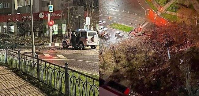 За словами Гладкова, на перехресті однієї з центральних вулиць утворилася величезна вирва радіусом 20 метрів. Пошкоджене скло у сусідньому багатоквартирному будинку, кілька припаркованих автомобілів та стовпи лінії електропередачі.