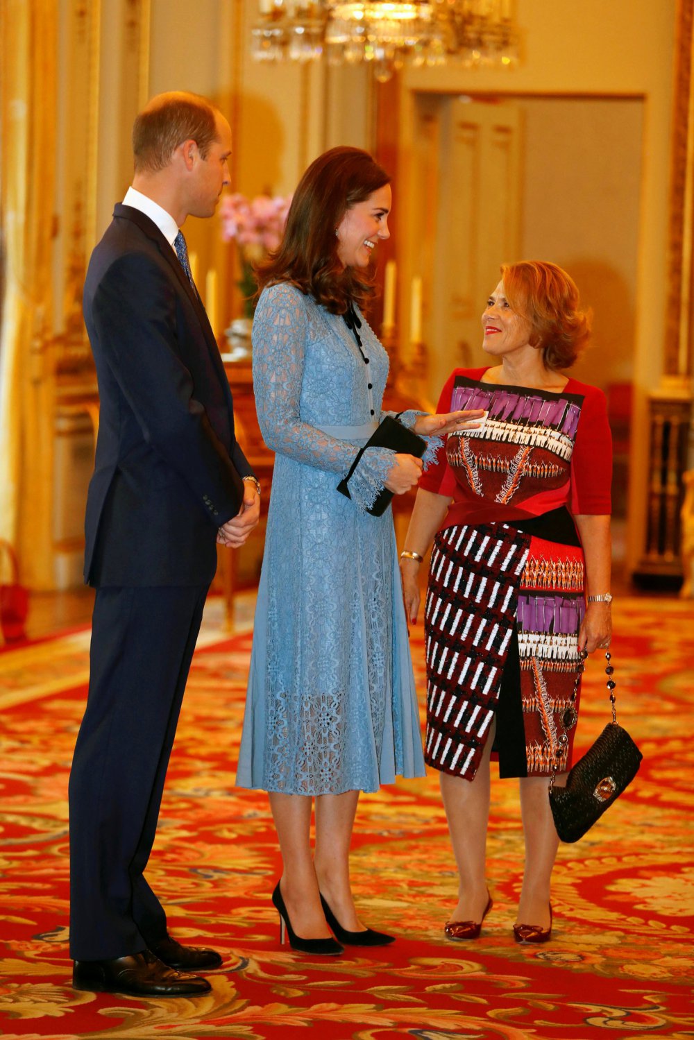 Дружина принца Вільяма зустріла гостей в ніжно-блакитній мереживній сукні, яку доповнила чорним клатчем і туфлями. Її чоловік виступив перед присутніми з промовою, нагадавши про успіхи благодійних організацій, які допомагають у вирішенні проблем психічного здоров'я. Серед гостей прийому був британський актор Стівен Фрай, який теж взяв слово.