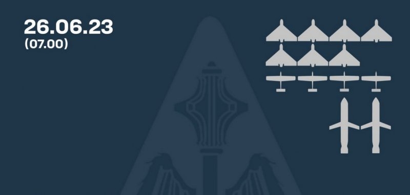В Україні під час атаки окупантів вночі 26 червня збили 2 з 3 крилатих ракет "Калібр", 7 з 8 "Шахедів" та усі 4 безпілотники невстановленого типу.
