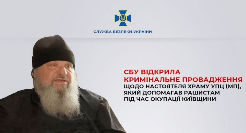 Факти колабораційної діяльності настоятеля храму упц мп у Бородянці Віктора Талька розслідує Служба безпеки України.