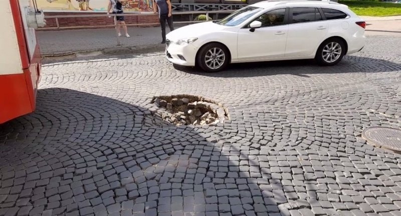 У Луцьку на проїжджій частині на вулиці Богдана Хмельницького поблизу департаменту муніципальної варти утворилося провалля.