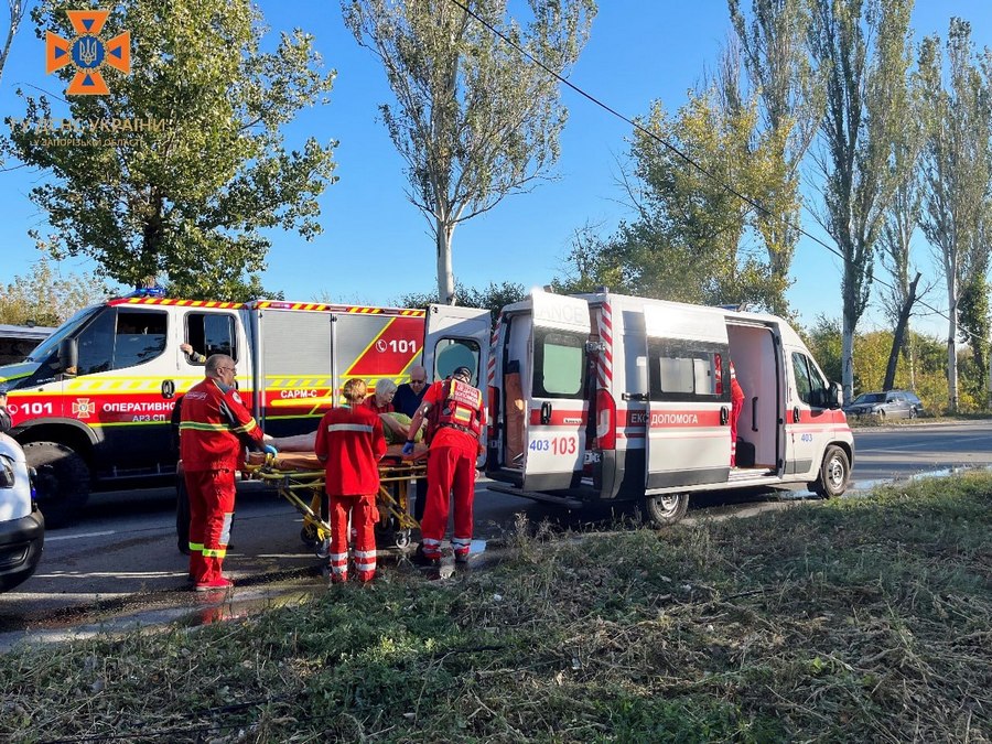 У результаті ДТП травмувалися 7 пасажирів і водій. Рятувальники перенесли двох постраждалих до карет швидкої.