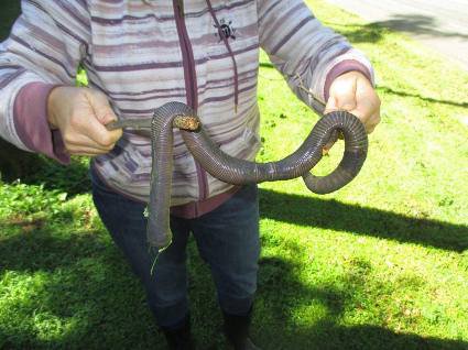 В Австралії жительці штату Квінсленд вдалося сфотографувати величезного земляного черв'яка, який був змушений виповзти на поверхню через те, що його нору затопив дощ.