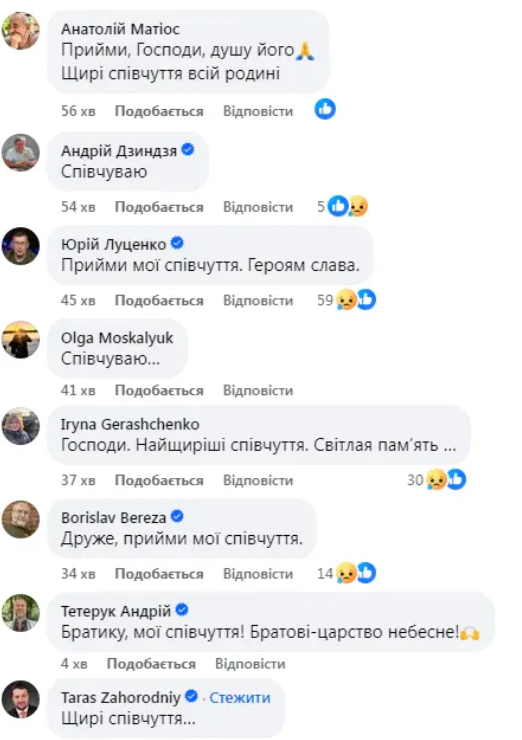 У коментарях під його повідомленням висловили співчуття багато відомих українців. Серед них були народні депутати, колишній та чинні посадовці та журналісти.