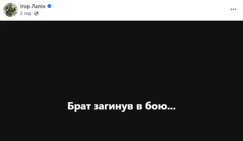 На фронті загинув брат народного депутата VIII скликання, офіцера Збройних сил України Ігоря Лапіна Олег. Йому було 46 років.