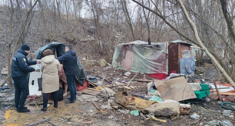 За її словами, поліціянти отримали повідомлення про те, що родина нібито проживає в хижі посеред лісосмуги. На місці правоохоронці виявили «недохатку» з кількох палок, які були обтягнуті аграрною плівкою.