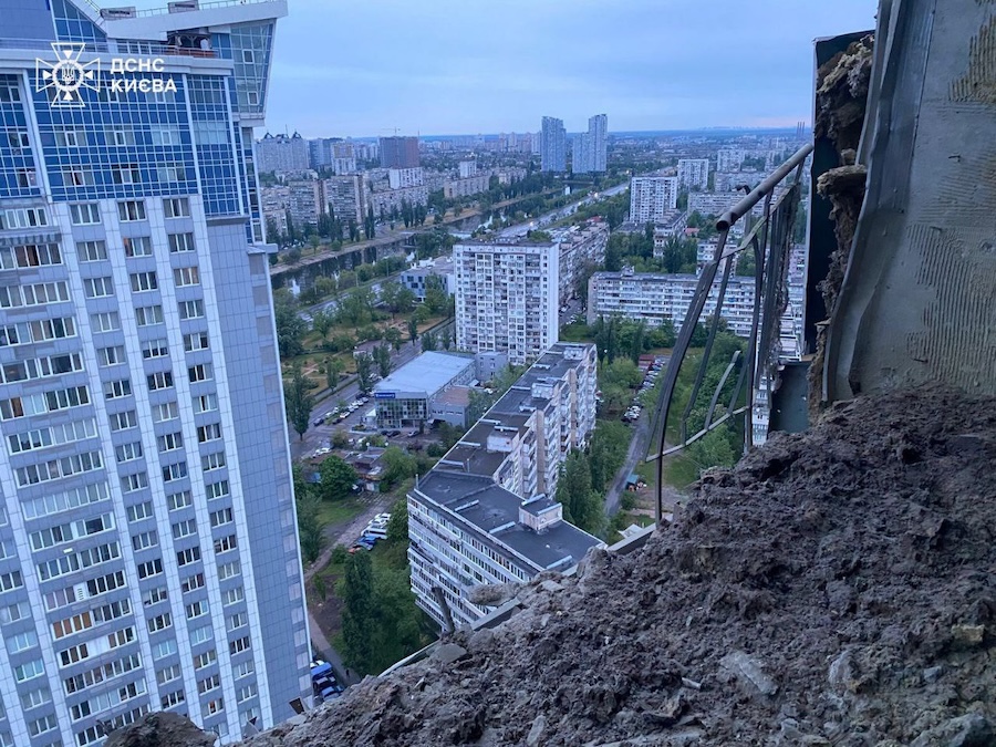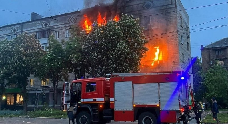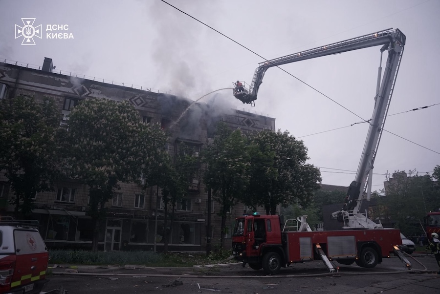 У Святошинському районі через російський обстріл виникли пожежі у кількох квартирах на верхніх поверхах житлового будинку, а у Дніпровському внаслідок атаки ворога сталося руйнування на верхньому поверсі житлового будинку.