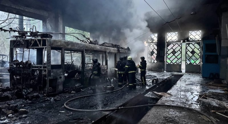 У Харкові по депо, де ремонтували та обслуговували тролейбуси, війська рф випустили 8 дронів типу Shahed.