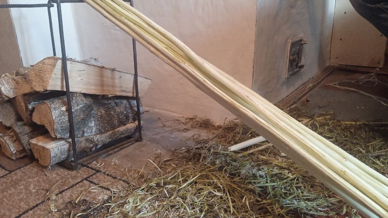 З її слів, заготівля лози відбувається в осінньо-зимовий період – після опадання листя і до початку весняного сокоруху. Прути зрізає гострим ножем або секатором, ретельно сортують за довжиною, товщиною та породою. Видаляє пошкоджені, пересушені або надмірно гіллясті гілки. Заготовлений прут варить у киплячій воді протягом 2-3 годин, а потім швидко охолоджує у холодній воді та очищає від кори ще теплим. Після цього лозу висушує, а перед використанням знову зволожує. Тривалість вимочування залежить від товщини прута і може коливатися від кількох хвилин до 6-8 годин.