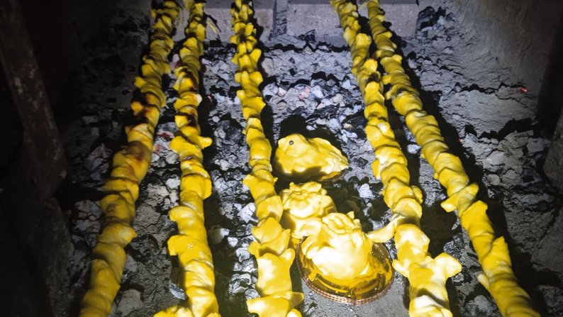 Сало залишають на добу, щоб захололо. Потім його нарізають великими шматками. У велику миску насипають сіль і подрібнюють її, щоб не було великих грудок – "буцків".
