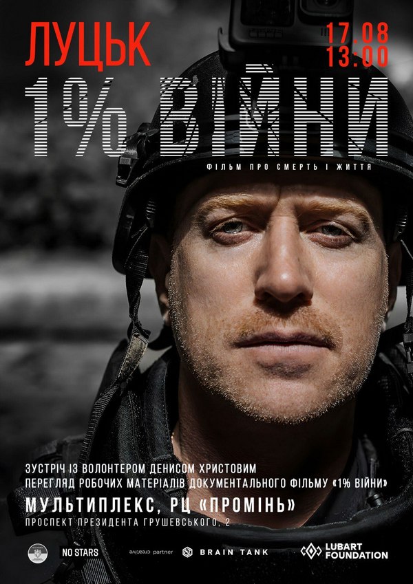 Вперше у Луцьку волонтер Денис Христов та його команда презентують документальний фільм «1% війни».