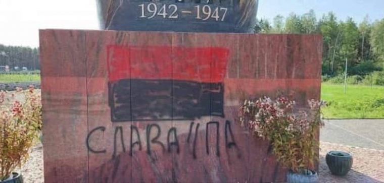 У Польщі розслідують інцидент із пам’ятником жертвам Волинської трагедії, на якому намалювали революційний червоно-чорний прапор ОУН та залишили напис «Слава УПА».