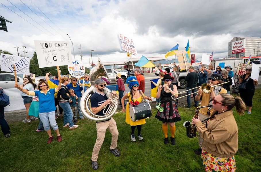 ???????????????? Happening right now: a big pro-Ukrainian rally in Anchorage ahead of the Trump-Putin meeting. “Ukraine and Alaska — Russian never again.” pic.twitter.com/Zx2VKVYW9G