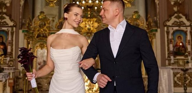 На світлині він разом зі своєю обраницею Юлією у храмі, де відбулося вінчання.