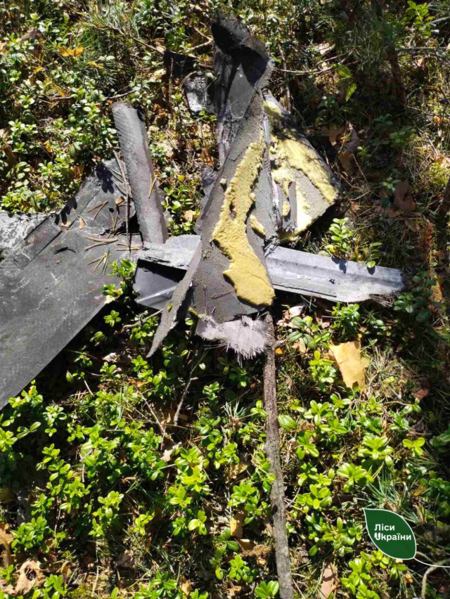 На Волині працівники філії "Поліський лісовий офіс" після нічної ворожої атаки виявили уламки збитого шахеда.