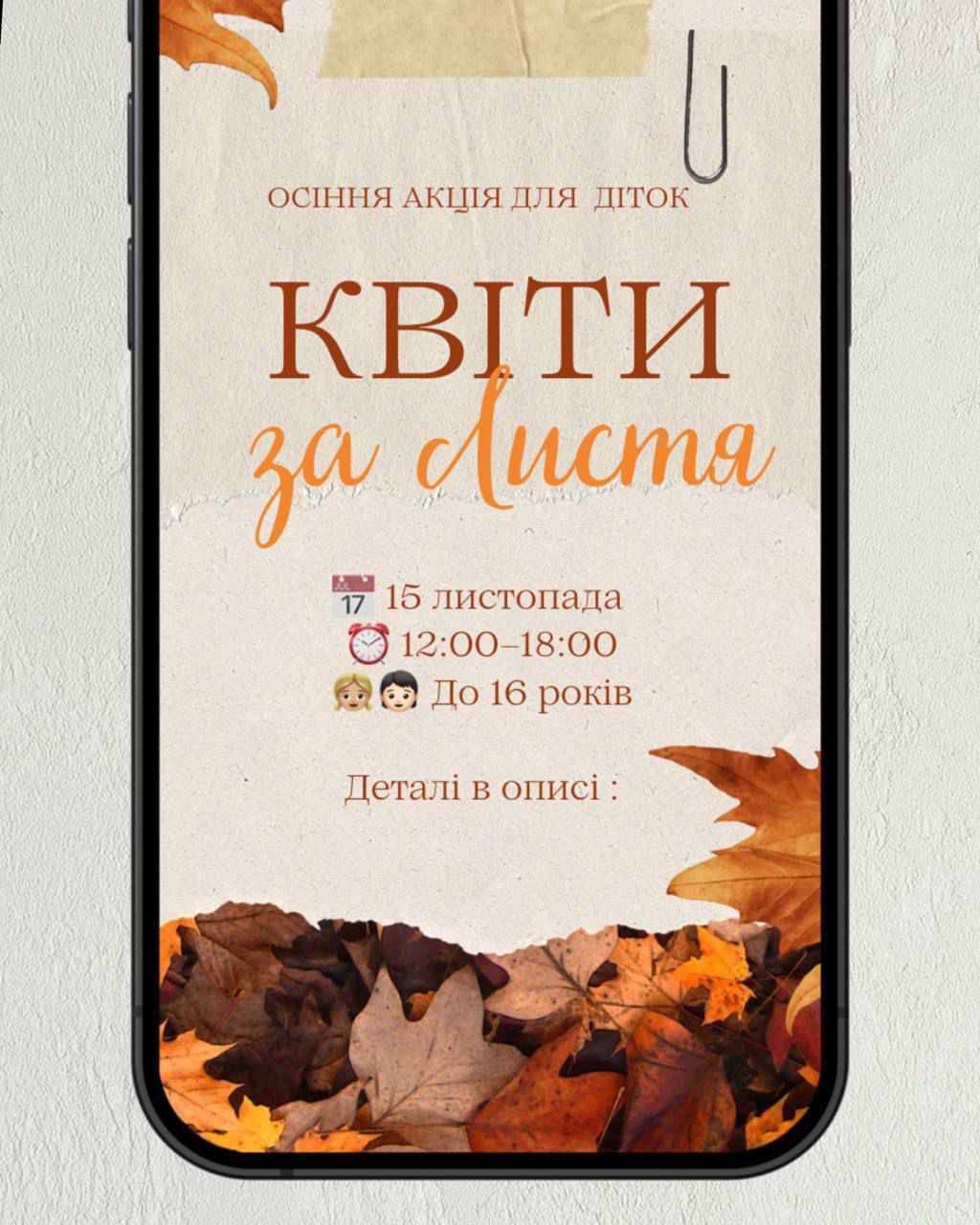 Умови участі прості й веселі: принесіть 20 осінніх листочків з дерев — і обміняйте їх на квіточку та солодкий подарунок.