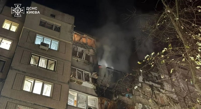 У Дніпровському районі уламки безпілотника влучили в п′ятиповерхівку. Там є руйнування на одному з нижніх поверхів, палали дві квартири. Ще пожежі фіксували в щонайменше п′яти будинках. Загалом із постраждалих багатоповерхівок надзвичайники врятували понад 40 людей.