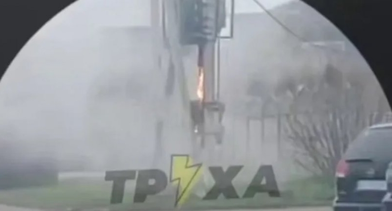 На ролику видно, як обладнання заіскрилося і вибухнуло. Навколо все затягнуло їдким димом.