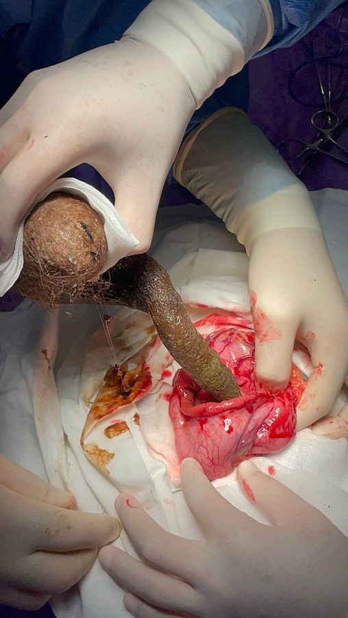 «Дитина зовсім не могла їсти, схудла, була постійна блювота, адже їжа не потрапляла в шлунок і зупинялася в стравоході, – розповідає Ігор Дородних. – Трихобезоар був щільний як камінь, тому довелося розрізати шлунок, щоб видалити його».